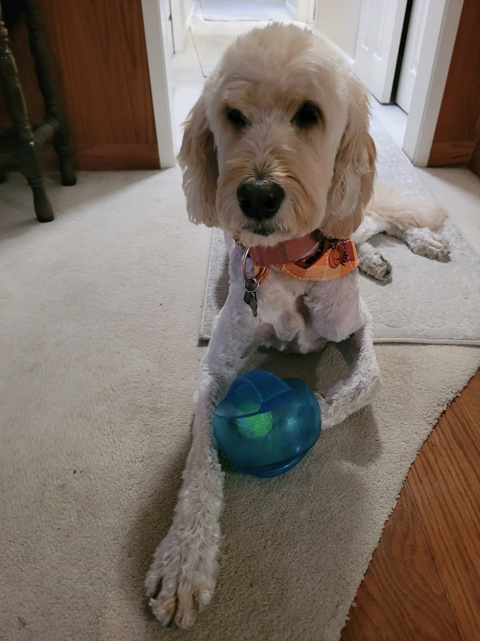 Some of you have been texting with questions about Daisy Doodle. Thank you for your sweet questions and concern for her wellbeing. Daisy and I went for a walk around the concrete neighborhood this morning. She found some grass to sniff and seemed happy about that. So many new smells and sounds to take in. She darts back against my leg when a loud truck goes by on the busy street. When I think about it, her life at camp has been serene, and without loud traffic noise. Wake up at 7 am, go sit behind the lodge kitchen and wait for some employee to toss a turkey sausage towards her feet. Wander around to the lodge patio and look cute and wait for a camper to rub her head and ears. There is a lot of head-rubbing if she stands in the doorway long enough.