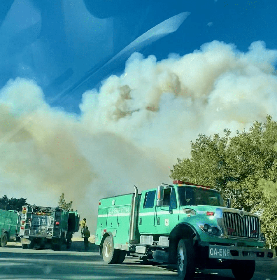 A flare up in the Line Fire, near the Seven Oaks area has forced us to evacuate again. Staff are locking the buildings and closing windows and loading up their cars once again.
